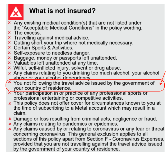 Zgodnie z warunkami ubezpieczenia Revolut, polisa nie chroni podróżnych, jeśli nie stosują się do zaleceń swojego rządu