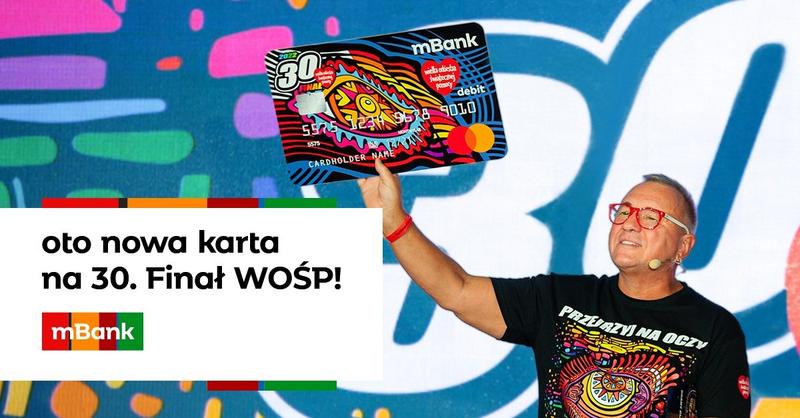 mBank pokazał, jak będzie wyglądała okolicznościowa karta z okazji 30. finału Wielkiej Orkiestry Świątecznej Pomocy. Jak zwykle, zaprojektował ją szef fundacji – Jurek Owsiak.