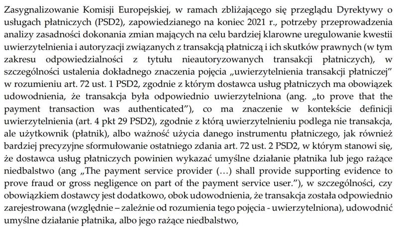 Rada działająca przy NBP proponuje także upowszechnić autoryzację transakcji przy wykorzystaniu biometrii behawioralnej (rozwiązanie, które umożliwia potwierdzenie tożsamości użytkownika serwisu bankowego na podstawie sposobu korzystania przez niego ze smartfona czy komputera). Chciałaby też zaproponować Komisji Europejskiej doprecyzowanie definicji w dyrektywie PSD II, dotyczących autoryzacji transakcji i uwierzytelnienia użytkowników instrumentów płatniczych.