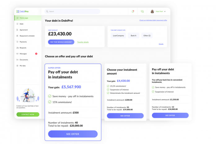 DebtPro pozwala dłużnikom zarządzać wszystkimi wierzytelnościami w jednym miejscu, nawet, jeśli pochodzą one z różnych instytucji finansowych. Użytkownicy przy pomocy dostępnego siedem dni w tygodniu przez całą dobę systemu mogą ustawić harmonogram, liczbę rat i okres spłat wierzytelności lub spłacić całość online. Mogą też złożyć wniosek lub zawrzeć ugodę z instytucją, w której są zadłużeni, a także prowadzić z nią dialog na czacie. Portale dostępne są także w wersji mobilnej. Aby korzystać z rozwiązania wystarczy login i hasło. Mogą go używac zarówno osoby fizyczne, jak i małe i średnie firmy.