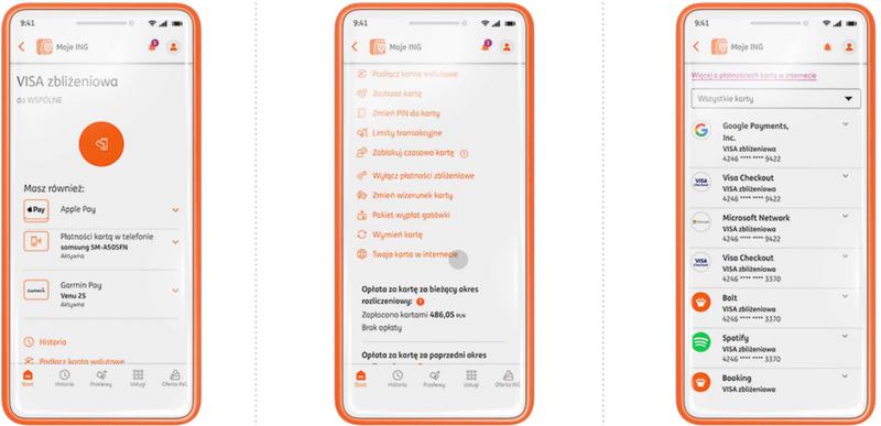 Jak informuje ING, rozwiązanie dotyczy tych sklepów i aplikacji, które zapamiętały dane karty w sposób zaszyfrowany cyfrowo. Aby skorzystać z nowej funkcji, należy po zalogowaniu na konto wyświetlić szczegóły karty Visa zbliżeniowa, a następnie kliknąć w link "Twoja karta w internecie". Zobaczycie wtedy zestawienie wszystkich serwisów i aplikacji, w których przechowywane są dane karty.
