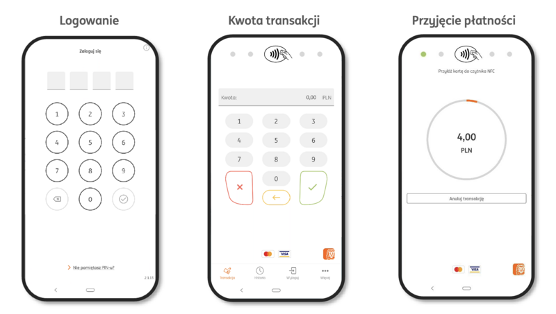 Jak widać, po zalogowaniu do aplikacji, należy wpisać kwotę transakcji i podobnie jak na tradycyjnym terminalu zatwierdzić ją zielonym przyciskiem na ekranie smartfona. Płacący zbliża kartę, swój telefon lub zegarek do czytnika NFC wbudowanego w smartfon sprzedającego (zazwyczaj są to "plecy" telefonu), a na ekranie pojawia się pytanie o sposób dostarczenia potwierdzenia płatności. Aplikacja pozwala też przeglądać historię transakcji, unieważnić ją lub zwrócić środki, np. jeśli na ekranie wpisano złą kwotę.