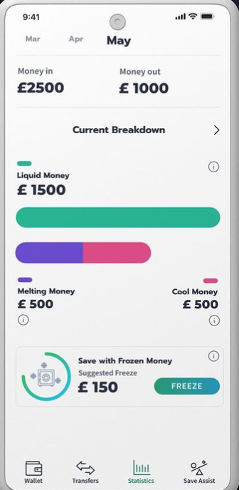 W mądrym zarządzaniu swoimi finansami ma klientom pomagać również moduł do analizy wydatków. Podzieli płatności klienta na dwie główne kategorie: melting money oraz cool money. W tej pierwszej znajdą się wydatki, których nie da się uniknąć (np. rachunki za podstawowe usługi). W drugiej – te, w których można szukać oszczędności, np. zakupy gadżetów czy podróże. Na podstawie balansu przychodów i rozchodów Frost podpowie również, jaką kwotę można zamrozić, czyli spróbować zaoszczędzić w danym miesiącu. Na razie jednak nie zaoferuje możliwości zainwestowania zamrożonych pieniędzy – taka usługa może zostać wprowadzona na dalszym etapie rozwoju startupu.