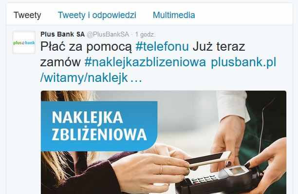 Nie oznacza to jednak, że instytucja ta stała się kolejną oferującą na naszym rynku płatności mobilne. Bank postawił na rozwiązanie dużo prostsze, a więc zaproponował klientom naklejkę zbliżeniową MasterCarda. Do końca czerwca nie pobiera za jej wydanie prowizji a jej używanie będzie bezpłatne, jeżeli klient wykona transakcje bezgotówkowe o wartości min. 500 zł miesięcznie. W przeciwnym wypadku prowizja wyniesie 3 zł miesięcznie. Bank promuje swoją nową ofertę m.in. na Twitterze.