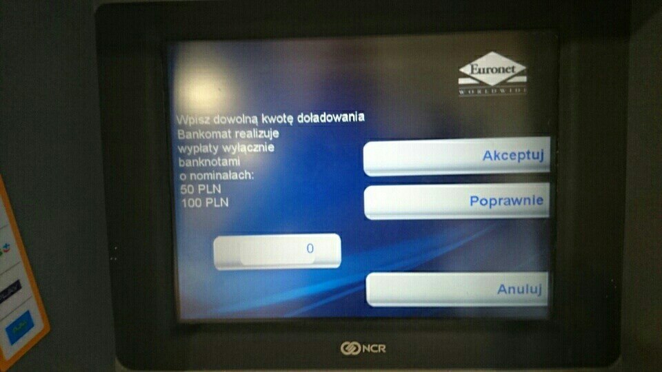 Problem nie jest może poważny, ale uciążliwy dla osób korzystających z usług finansowych w bankomatach sieci Euronet. Chodzi o to, że użytkownik po podaniu PIN-u, rodzaju oraz kwoty transakcji jakiej chce dokonać, otrzymuje listę niepoprawnych komunikatów. Do wyboru ma trzy opcje: "Akceptuj", "Poprawnie" lub "Anuluj", jak na poniższym zdjęciu.