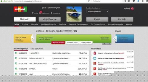 Jeżeli jesteście klientami tej instytucji, to pewnie znacie ten widok i zakładam, że już nieco umiecie się po tej stronie poruszać. Ja szczerze mówiąc nie za bardzo. Wzdryga mnie za każdym razem, gdy muszę się tu zalogować. Rozumiecie na przykład, co do diaska na środku strony robi ta łódka? I gdzie jest moja karta? Gdyby nie świetna aplikacja mobilna, która w znacznym stopniu zastępuje serwis, już dawno pożegnałbym się z mBankiem.