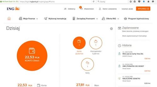 Na drugim obrazku jest już lepiej. Poniżej widzicie bowiem serwis ING Banku Śląskiego. Jest w miarę przejrzyście i nie ma tu wodotrysków czy kolorowanek dla dzieci jak w mBanku. W miarę intuicyjnie poruszam się tutaj pomimo tego, że wpadam tu rzadko, bo rachunek w Śląskim służy mi tylko do testowania nowych produktów tego banku. Chociaż koncepcja z różnej wielkości kołami też nie do końca do mnie przemawia.