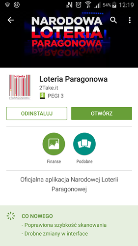 Apka, którą już pobrałem ze sklepu Google Play, umożliwia dodawanie paragonów bez wpisywania ręcznie danych z dowodów zakupu towarów i usług. Aplikacja automatycznie sczytuje z paragonów takie dane jak numer identyfikacji podatkowej podatnika wystawiającego paragon, numer kasy fiskalnej, datę oraz kwotę. Pozwala także na wpisanie i zapamiętanie adresu e-mail oraz numeru telefonu uczestnika, co powoduje przepisanie tych danych do formularza zgłoszeniowego loterii. Ministerstwo Finansów zapewnia, że aplikacja nie zbiera danych ani zdjęć paragonów.