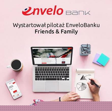 Bank Pocztowy pisze tak: To ważny dzień dla nas – pierwszy klient już korzysta z bankowości internetowej EnveloBanku! Właśnie rozpoczęliśmy pilotaż "Friends&Family" – w pierwszej, wewnętrznej fazie pracownicy Banku Pocztowego mają możliwość zostać klientami EnveloBanku i testować jego usługi zanim udostępnimy je szerszemu gronu osób.