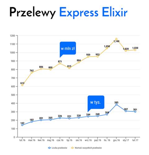 W lutym drugi miesiąc z rzędu rosła średnia wartość przelewu w systemie Express Elixir