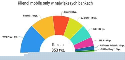 Z informacji uzyskanych na podstawie ankiety rozesłanej do największych banków w Polsce wynika, że takich klientów logujących się na konto wyłącznie z urządzeń mobilnych (poprzez aplikacje, serwisy light oraz zwykłe serwisy transakcyjne tyle że uruchamiane na smartfonie lub tablecie) na koniec ubiegłego roku było ok. 850 tys. W rzeczywistości jest ich zapewne więcej ponieważ część banków nie udostępniła mi danych. Niektóre dlatego, że to wbrew ich polityce informacyjnej. Inne dlatego, że pod takim kątem nie analizują jeszcze swoich statystyk.