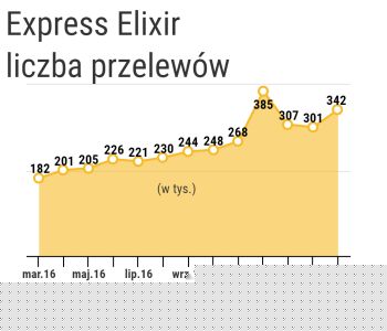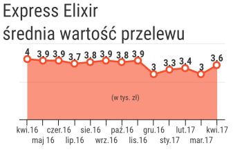Również w całym I kw. 2017 r. odnotowano wzrost zarówno liczby, jak i wartości przelewów w porównaniu z okresem od stycznia do marca roku ubiegłego. Wzrost ten wyniósł odpowiednio 106 proc. w przypadku liczby i 70 proc. w przypadku wartości transakcji. Natomiast największą dzienną liczbę przelewów w systemie Express Elixir w marcu odnotowano jego dziesiątego dnia – rozliczono wtedy ponad 18 tys. transakcji.