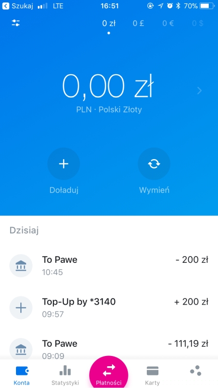 Revolut to aplikacja powiązana z numerem telefonu i przedpłaconą kartą Mastercard. Korzystając z niej macie do dyspozycji salda prowadzone jednocześnie w kilkunastu walutach, w tym w złotych, euro, dolarach amerykańskich oraz funtach szterlingach. Revolut deklaruje, że niezależnie od waluty, w jakiej dokonywana jest płatność kartą, transakcje są rozliczane zawsze po najlepszych kursach międzybankowych bez dodatkowych opłat. Do określonej kwoty można także bez prowizji wypłacić pieniądze z bankomatu w każdym kraju.