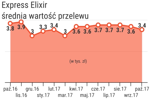 Najwyższą w październiku dzienną liczbę transakcji oraz ich wartość rozliczono ostatniego dnia tego miesiąca – 31 października. System przetworzył wówczas 29,4 tys. przelewów na kwotę 102,3 mln zł. Natomiast średnia wartość przelewu ekspresowego w październiku spadła do ok. 3,4 tys. zł z 3,6 tys. zł we wrześniu.
