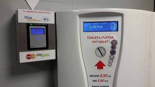 Kiedyś podczas wizyty w publicznej toalecie musieliście mieć gotówkę i to najlepiej bilon. Ale teraz już nie. Na kilku dworcach kolejowych, m.in. w Krakowie i w Warszawie, znajdziecie już toalety ze zbliżeniowymi terminalami płatniczymi. Z doniesień czytelników wiem, że w całym kraju jest już ich sporo. O tej z Krakowa, możecie przeczytać tutaj.