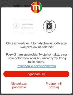Sprawdziłem i rzeczywiście najnowsza wersja aplikacji mBanku umożliwia już oznaczenie w książce telefonicznej osób korzystających z przelewów P2P Blikiem. Jeżeli wyrazicie zgodę na dostęp apki do kontaktów, numery komórek osób, które aktywowały P2P Blikiem zyskają specjalną ikonkę. Dzięki temu od razu wiecie, do kogo możecie wysłać pieniądze bez konieczności pamiętania numeru rachunku. Wygląda to tak: