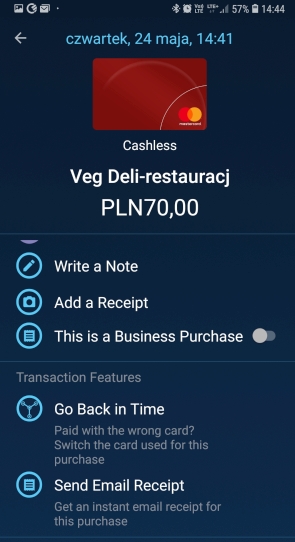 Użytkownik aplikacji Curve sam decyduje, którą z powiązanych kart dokona najbliższej transakcji. Wystarczy, że przed użyciem wskaże ją w aplikacji, a płatność kartą wydaną przez Curve zrealizuje się z rachunku wybranego plastiku. Co więcej, jeśli się pomylicie i użyjecie nie tej karty, płatność można przenieść na inny plastik nawet już po zakończeniu transakcji. Ta funkcja nazywa się "Go Back in Time", czyli "cofnij się w czasie" i zadziała do 14 dni po zakupach.