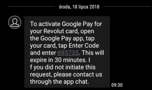 Autoryzować operację można za pomocą hasła nadesłanego w wiadomości SMS lub bezpośrednio w aplikacji Revolut.