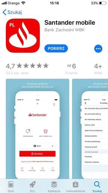Prezes SBP Michał Gajewski powiedział, że w miniony weekend wszystkie oddziały własne, placówki partnerskie i bankomaty a także serwis internetowy BZ WBK poddane zostały rebrandingowi. W App Store pojawiła się także aktualizacja aplikacji BZ WBK, dzięki czemu teraz jest to apka Santander mobile z charakterystycznym czerwonym logo i oznaczeniem PL. Jej wydawcą wciąż jest BZ WBK a apka wygląda tak: