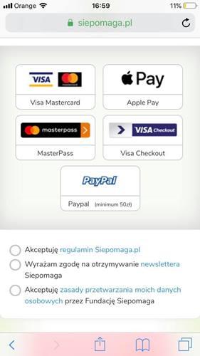 Integratorem płatności, który obsługuje zbiórki w serwisie siepomaga.pl, jest firma PayU. Jej biuro prasowe już kilka dni temu potwierdziło, że spółka pracuje nad wdrożeniem nowego sposobu płatności do swojego systemu, a pierwsi akceptanci wkrótce będą mogli zacząć przyjmować płatności za pomocą Apple Pay. Wygląda na to, że ta zapowiedź właśnie została zrealizowana.