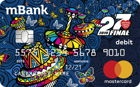 Stało się tradycją, że bank współpracujący z Wielką Orkiestrą Świątecznej Pomocy z okazji wielkiego Finału wydaje kartę płatniczą z okolicznościowym wizerunkiem. Tak jest i w tym roku. Debetowa karta z logo Mastercard już jest dostępna w ofercie mBanku i można ją zamawiać. A wygląda tak: