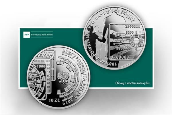 Narodowy Bank Polski wprowadził dziś do obiegu srebrną, dziesięciozłotową monetę kolekcjonerską upamiętniającą przypadającą na rok 2019 setną rocznicę powstania PKO Banku Polskiego. Monetę wybito w liczbie 20 tys. sztuk. Można ją kupić w okręgowych oddziałach NBP oraz w sklepie internetowym Kolekcjoner w cenie 120 zł. Moneta wygląda tak: