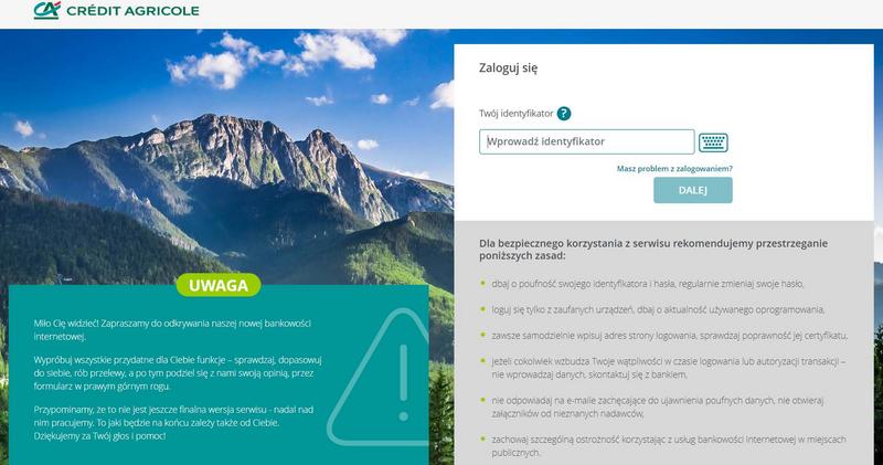 Kilka dni temu biuro prasowe Credit Agricole poinformowało, że bank jeszcze przed wakacjami zamierza udostępnić klientom nowy internetowy serwis transakcyjny. Obecnie znajduje się on w fazie testów family and friends, do których zostałem zaproszony. W związku z tym mogę co nieco napisać na temat tego, jak nowy system wrocławskiego banku się prezentuje.