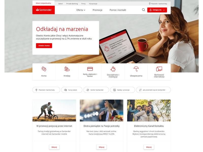 Santander Bank Polska 1 czerwca udostępni nową wersję serwisu informacyjnego. Bank deklaruje, że zmieniona witryna będzie wyróżniała się nowoczesną szatą graficzną oraz przejrzystą strukturą, umożliwiającą użytkownikom łatwe przeglądanie treści oraz porównywanie produktów.