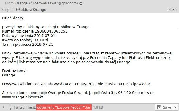 Jeśli otrzymacie taki e-mail, nie otwierajcie załączonego do niego pliku.