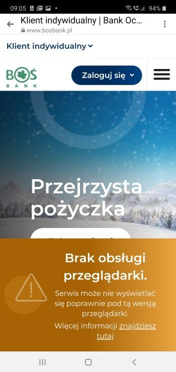 Natomiast mimo udostępnienia strony, widać, że bank nadal dopracowuje szczegóły. Serwis jeszcze nie działa tak jak powinien. Na przykład nie współpracuje z domyślną przeglądarką na niektórych smartfonach Samsung. Pojawia się następujący komunikat:
