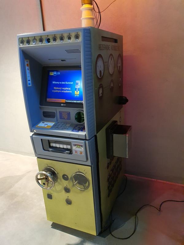 Bankomat Euronetu dostosowano do wystroju wnętrza, w którym nawiązano do pierwotnej funkcji obiektu
