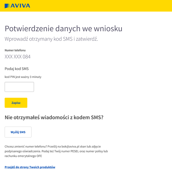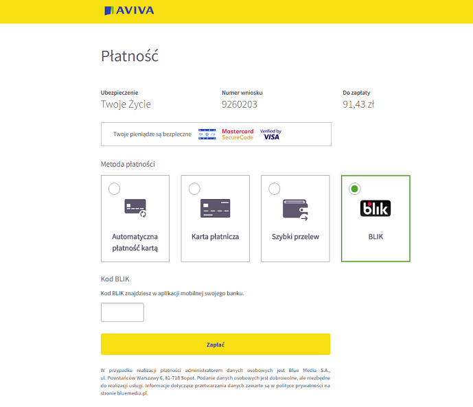 Klient zapoznaje się z wnioskiem i zatwierdza go, po czym opłaca składkę samodzielnie w MojejAvivie.