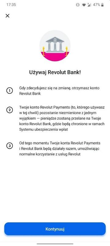 Z przesyłanej informacji wynika, że jeśli klient fintechu zdecyduje się korzystać z usługi bankowej, jego pieniądze zostaną przelane na konto w Revolut Bank, "gdzie będą chronione w ramach systemu ubezpieczenia wpłat". Zgodnie z europejskimi przepisami, środki wpłacane na konta bankowe są objęte gwarancjami do kwoty 100 tys. euro.