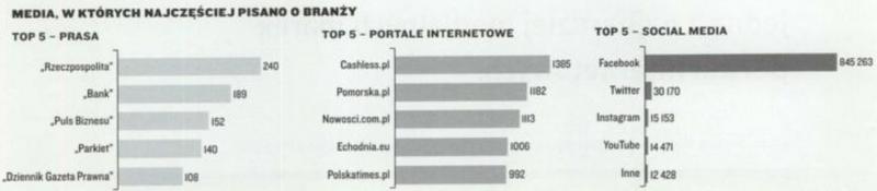 Natomiast przy okazji rankingu magazyn Press przygotował zestawienie mediów, które o branży płatniczej piszą najczęściej i dostarczają na jej temat najwięcej informacji. Z zestawienia wynika, że wśród portali internetowych na pierwszym miejscu jest cashless.pl. Spośród tytułów prasowych najczęściej o branży płatniczej pisała Rzeczpospolita, a jeśli chodzi o media społecznościowe prym wiedze Facebook.