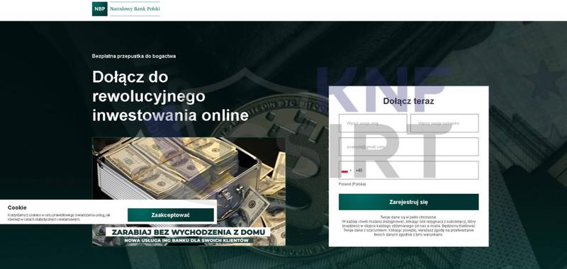 Wzmianka o NBP ma uwiarygodnić nieistniejącą kryptowalutową giełdę reklamowaną przez przestępców