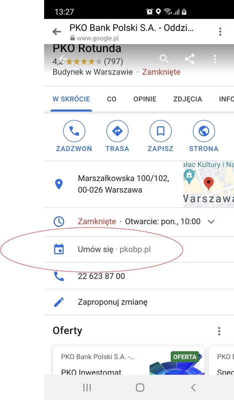 PKO BP umożliwił już umawianie się na rozmowę z doradcą bezpośrednio przez Mapy Google