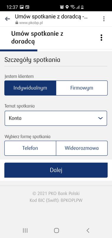 Następnie należy wskazać, czy zainteresowany jest klientem indywidualnym czy firmowym, wybrać temat rozmowy oraz określić jej formę (telefoniczna lub wideo). Ważne, że po umówieniu się w ten sposób odpowiednia adnotacja o spotkaniu trafia bezpośrednio do kalendarza konkretnego doradcy PKO BP.